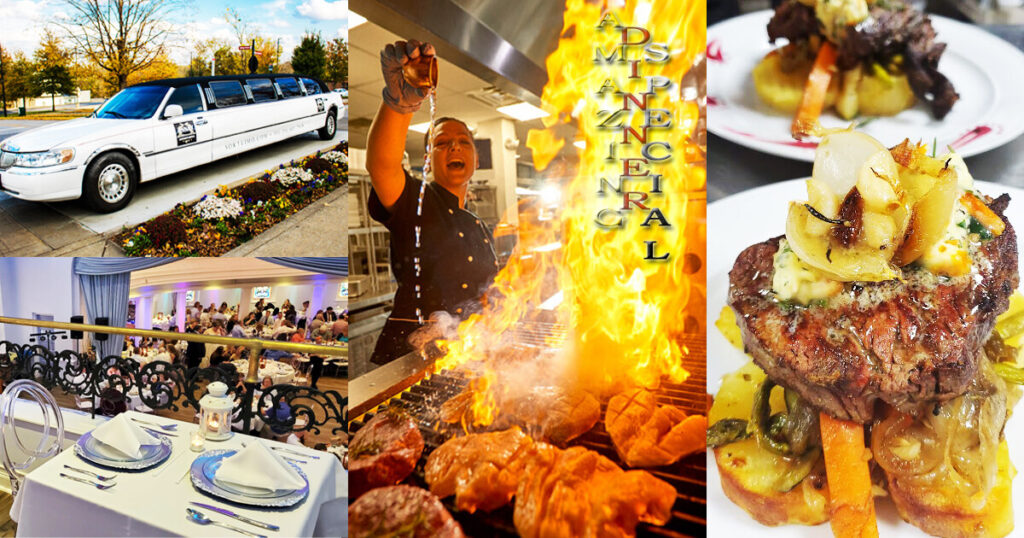Purchase includes: Limousine Transportation & FIVE Course Dinner Menu with Drinks included.