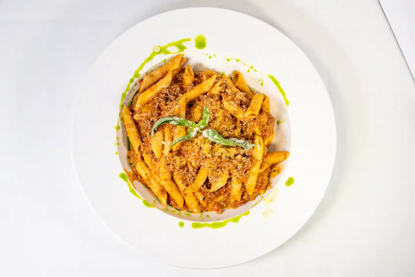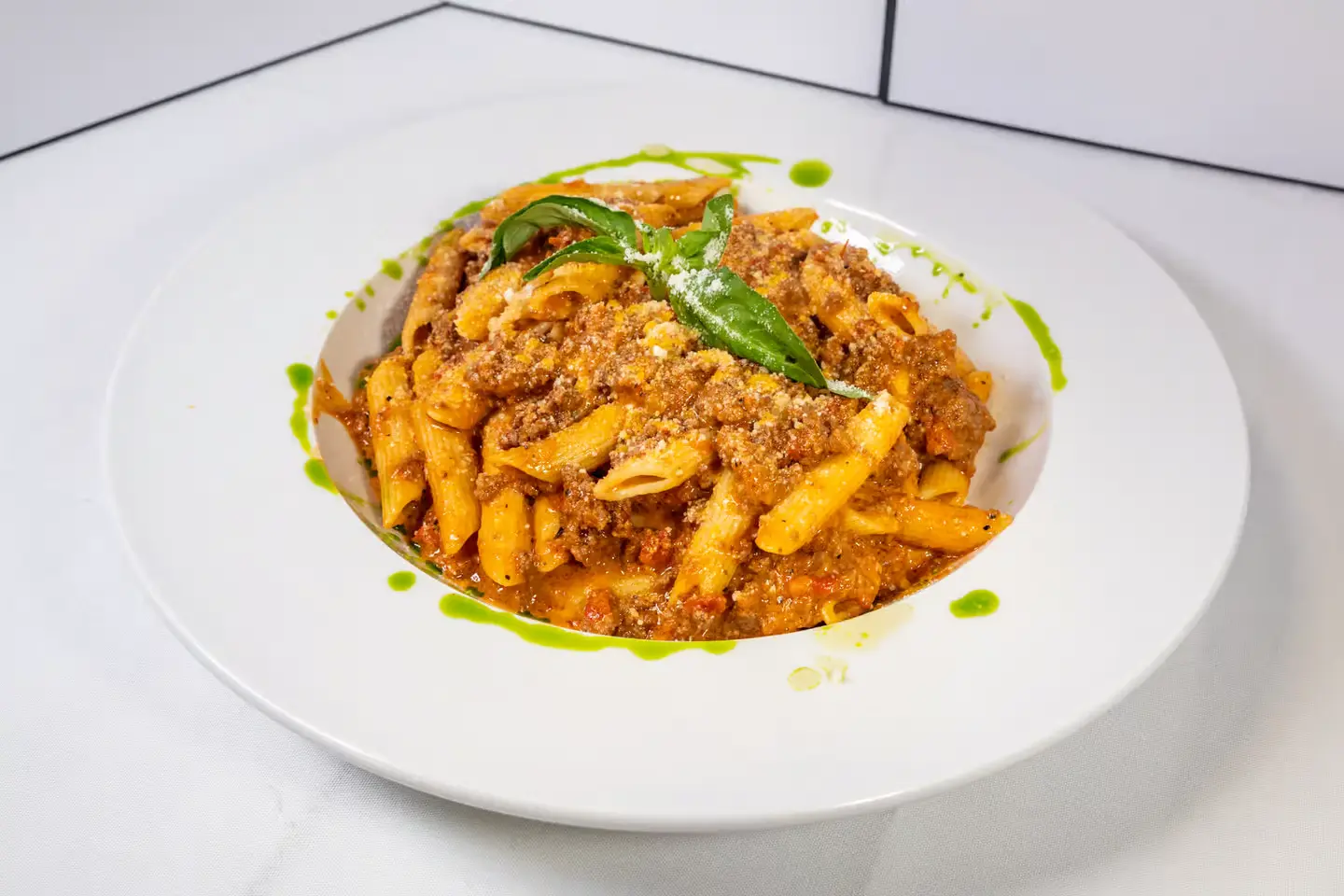 Ground sirloin beef, minced onion, slowly simmered in fresh tomato sauce, and fresh herbs